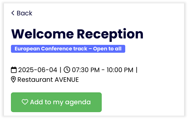 You can add here your favourite sessions by clicking on the green button in the session description.